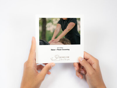 Ce coffret cadeau vous ouvre les portes d'une parenthèse de douceur et de bien-être à HOME CHIC dans les prés, où la nature et le calme se conjuguent pour des moments ressourçants.